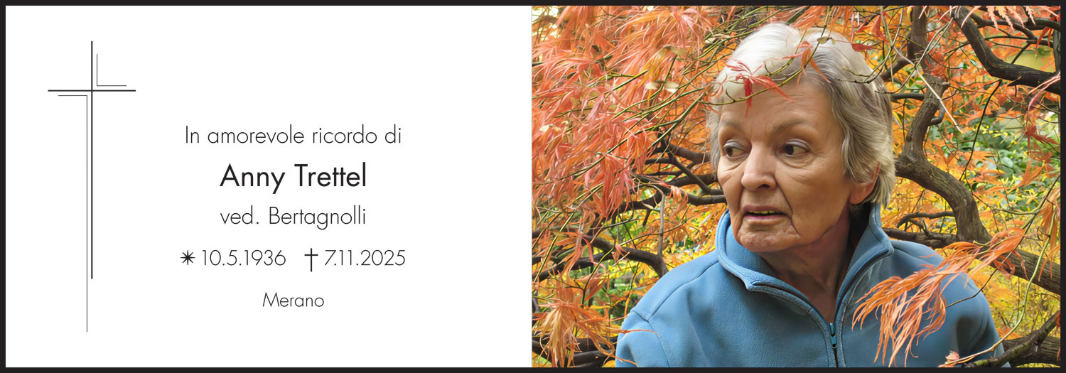 Die Trauerfeier mit anschließender Verabschiedung findet am Freitag, dem 28. November, um 15.30 Uhr in der Kapelle des städtischen Friedhofs von Meran statt.