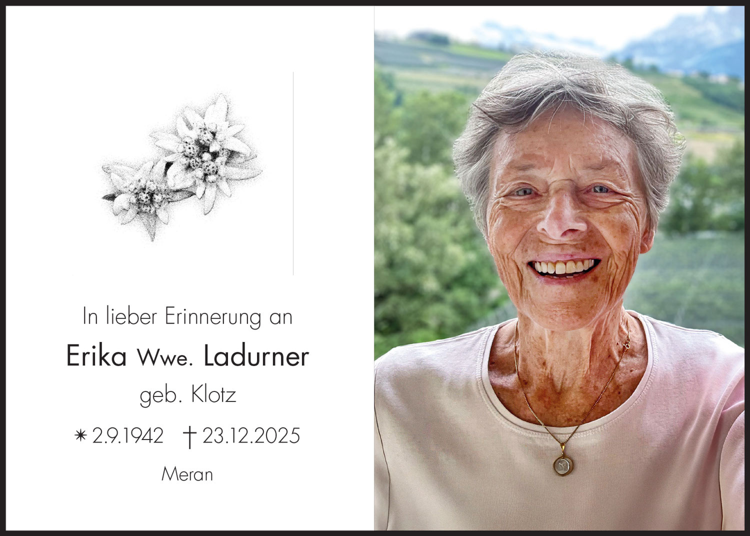 Trauerfeier am Donnerstag, dem 8. Januar, um 15.30 Uhr im Stadtfriedhof Meran