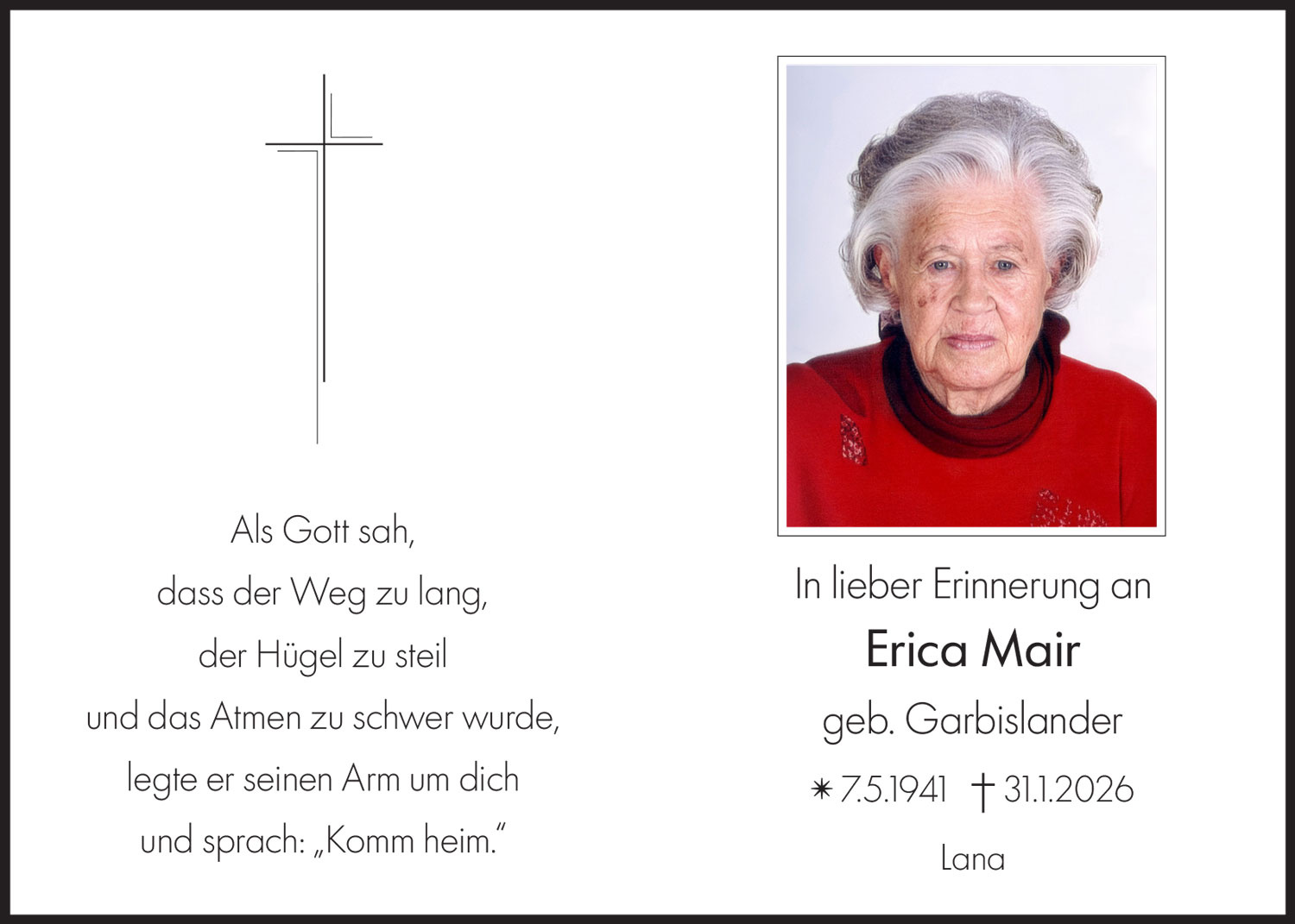 Entzünden Sie als Symbol der Ewigkeit eine Kerze, zum Gedenken an Erica Mair geb. Garbislander.