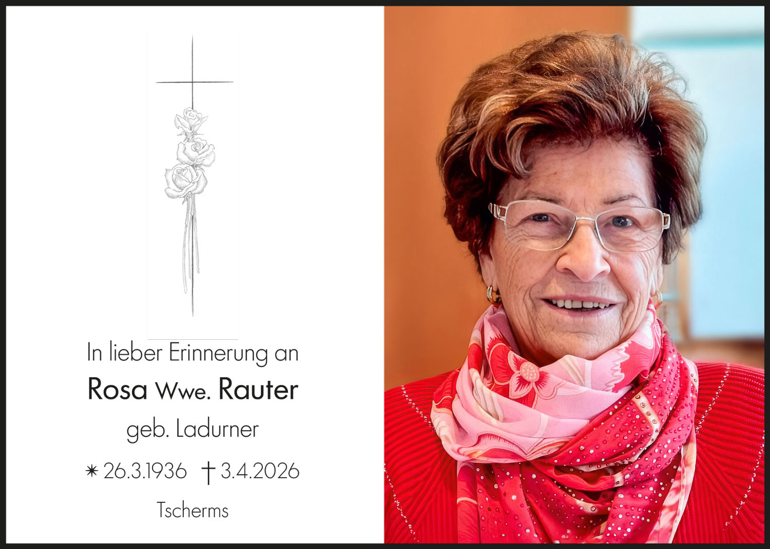 Entzünden Sie als Symbol der Ewigkeit eine Kerze, zum Gedenken an Rosa Wwe. Rauter geb. Ladurner.