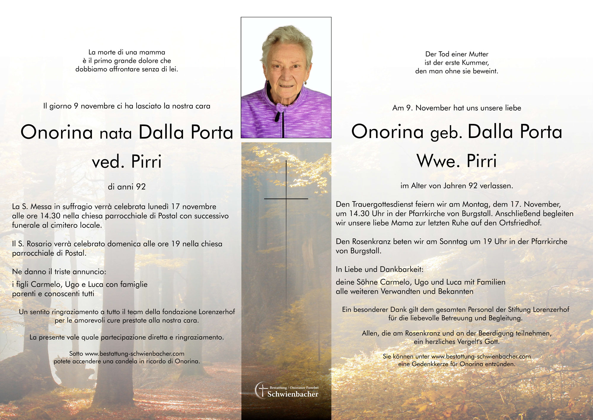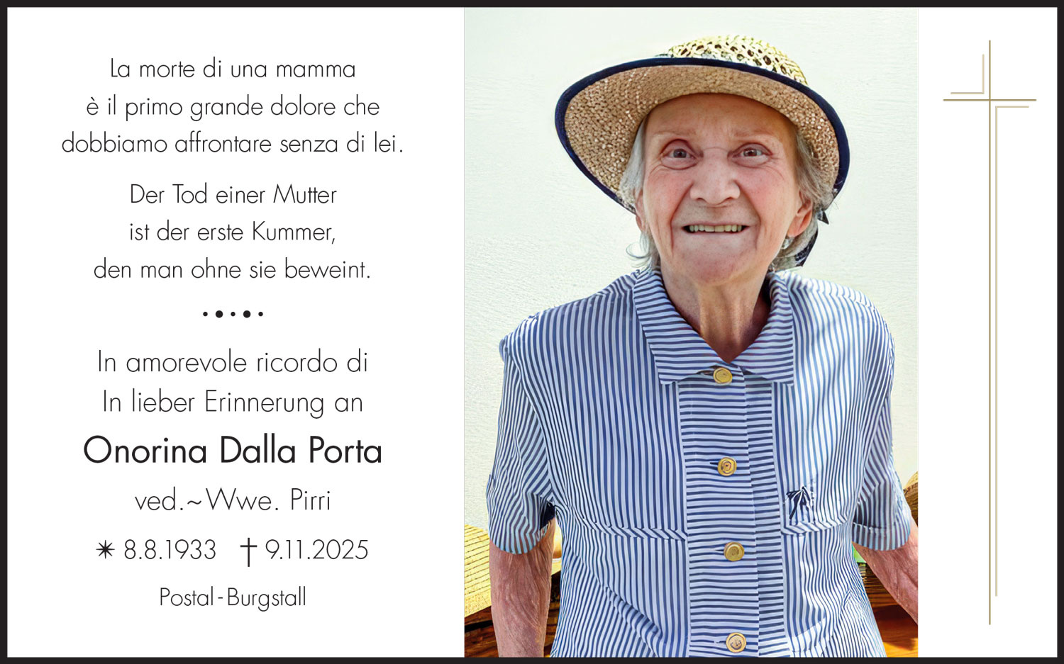 Accendete una candela come simbolo dell’eternità, per ricordare Onorina Marta Wwe. Pirri geb. Dalla Porta.