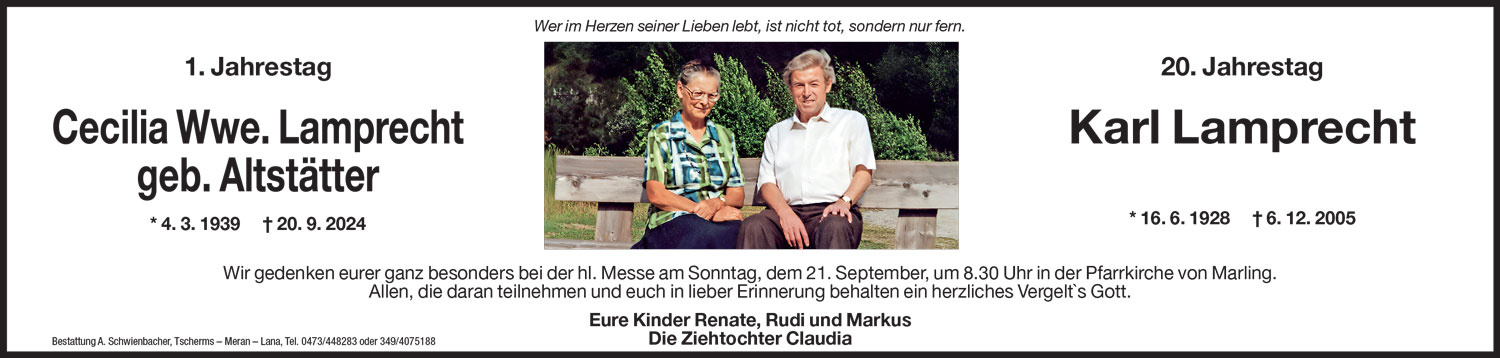 Accendete una candela come simbolo dell’eternità, per ricordare Cecilia Wwe. Lamprecht geb. Altstätter.