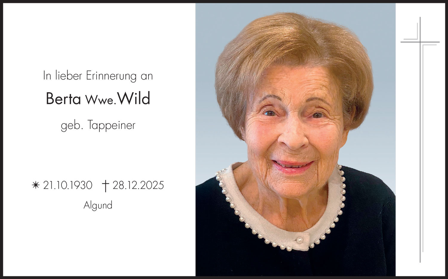 Accendete una candela come simbolo dell’eternità, per ricordare Berta Wwe. Wild geb. Tappeiner.